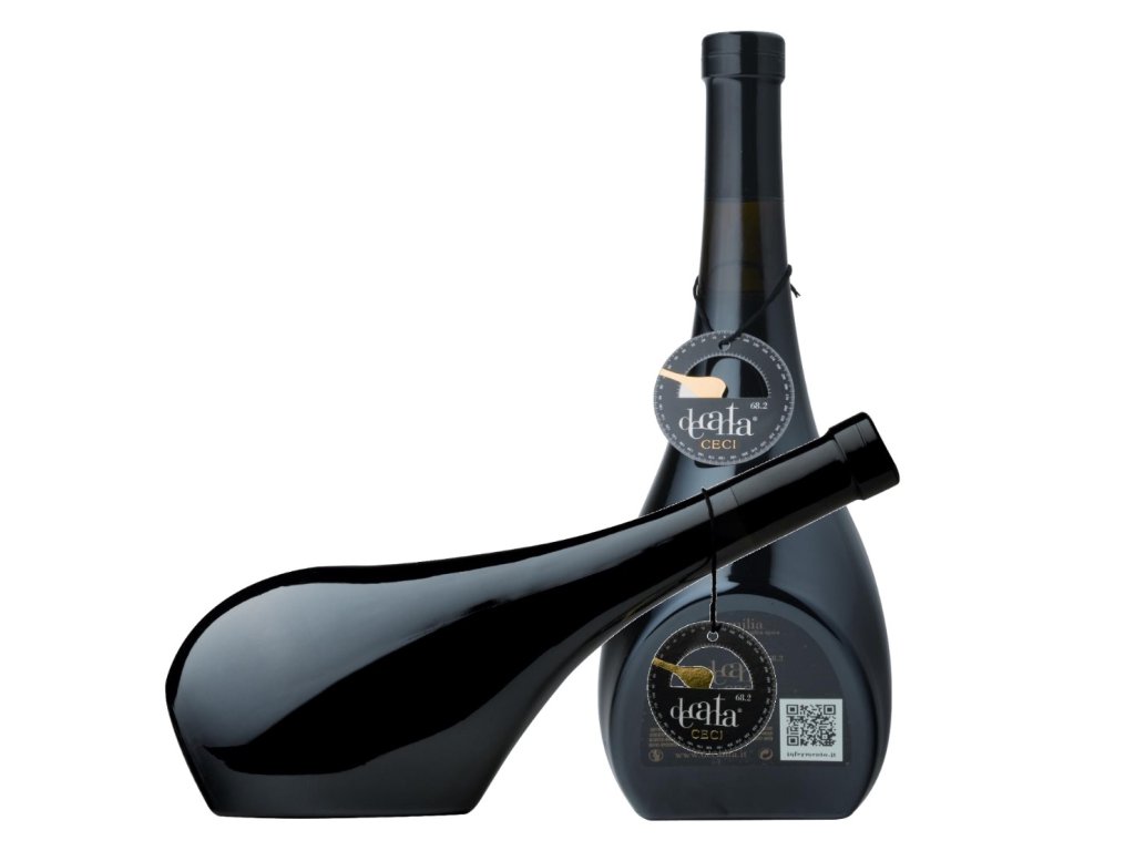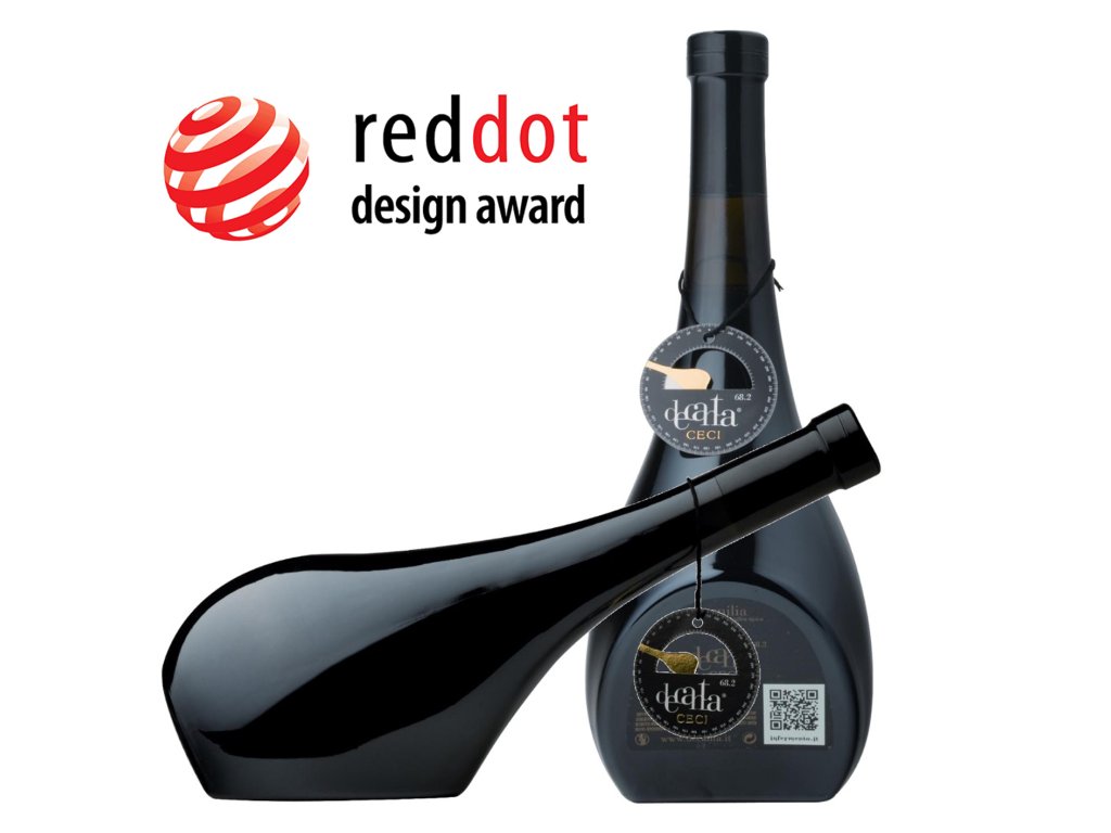 Design láhve, jež při naklonění o 68,2 se stává karafou a umožňuje vynikající okysličení vína. Jde o příklad syntézy mezi inovativní a elegantní formou a stejně tak vybraným obsahem.