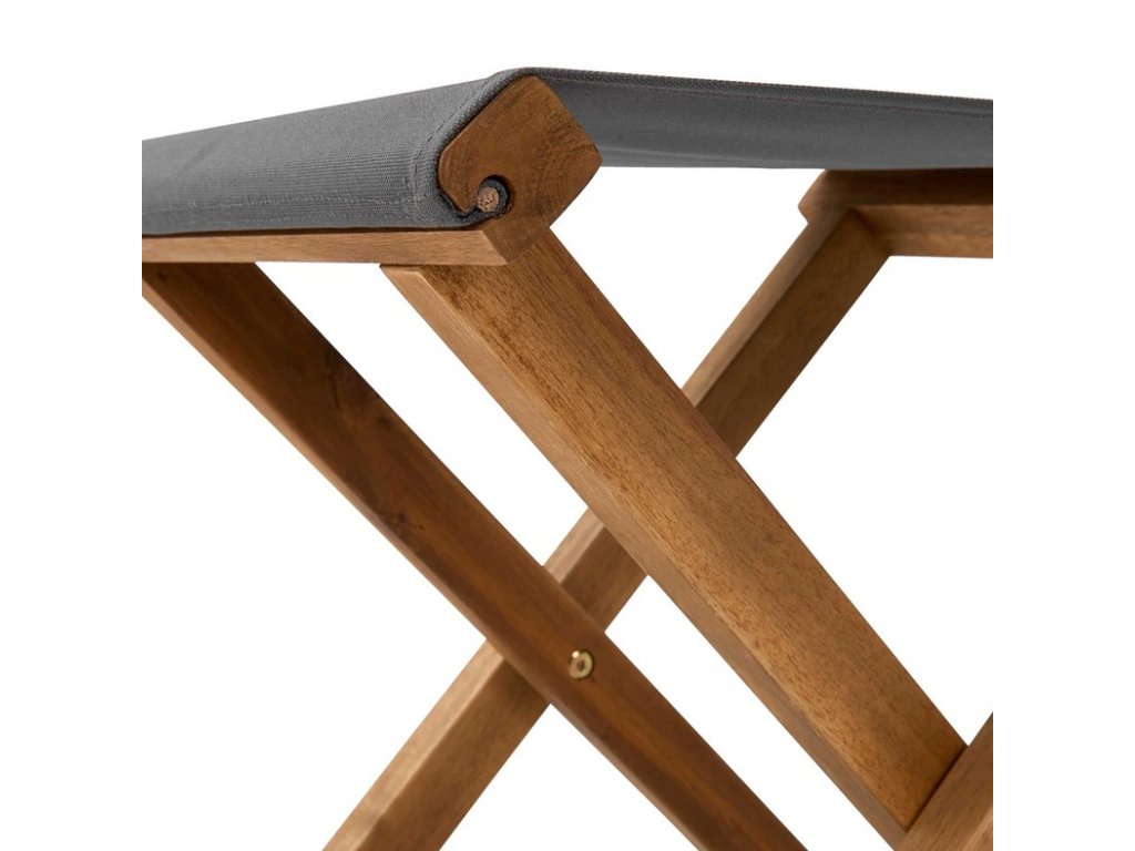 Rybářská židlička z akátového dřeva v klasickém tvaru. Sedátko je z praktického voduodpuzujícího materiálu ze 100% polyesteru.