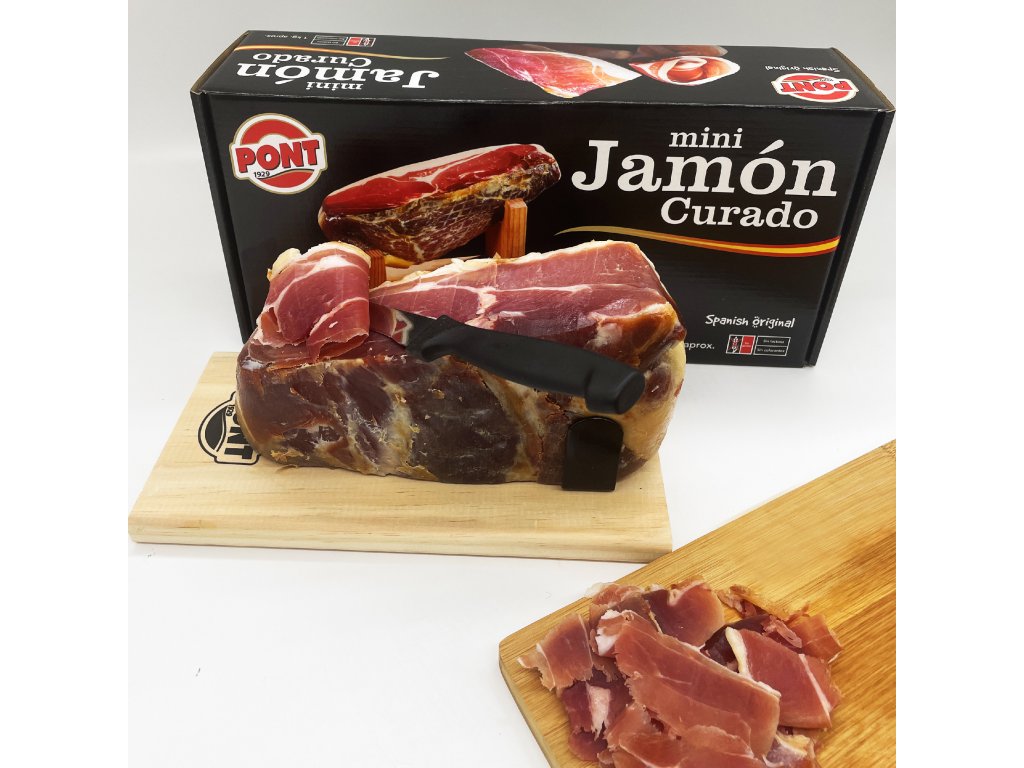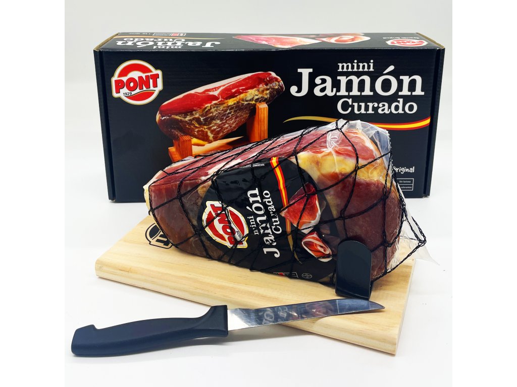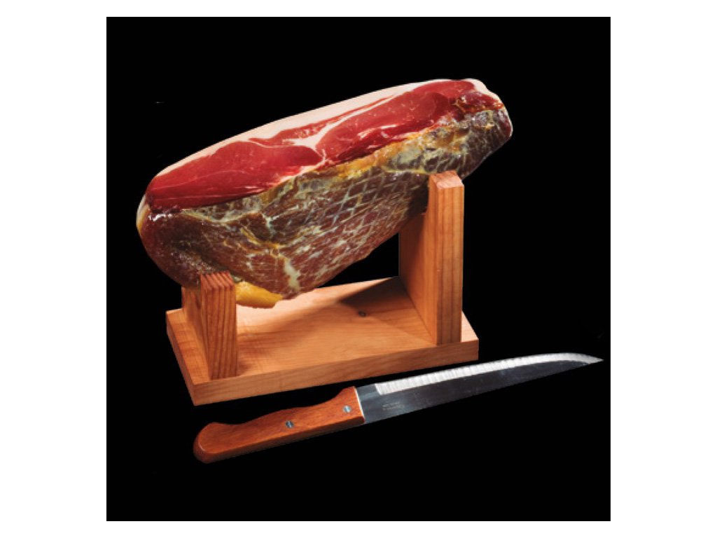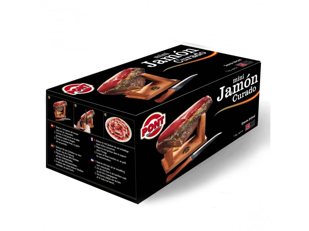 Dárková krabička s vyobrazeným Jamón ve stojánku a černým nožem