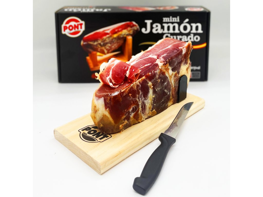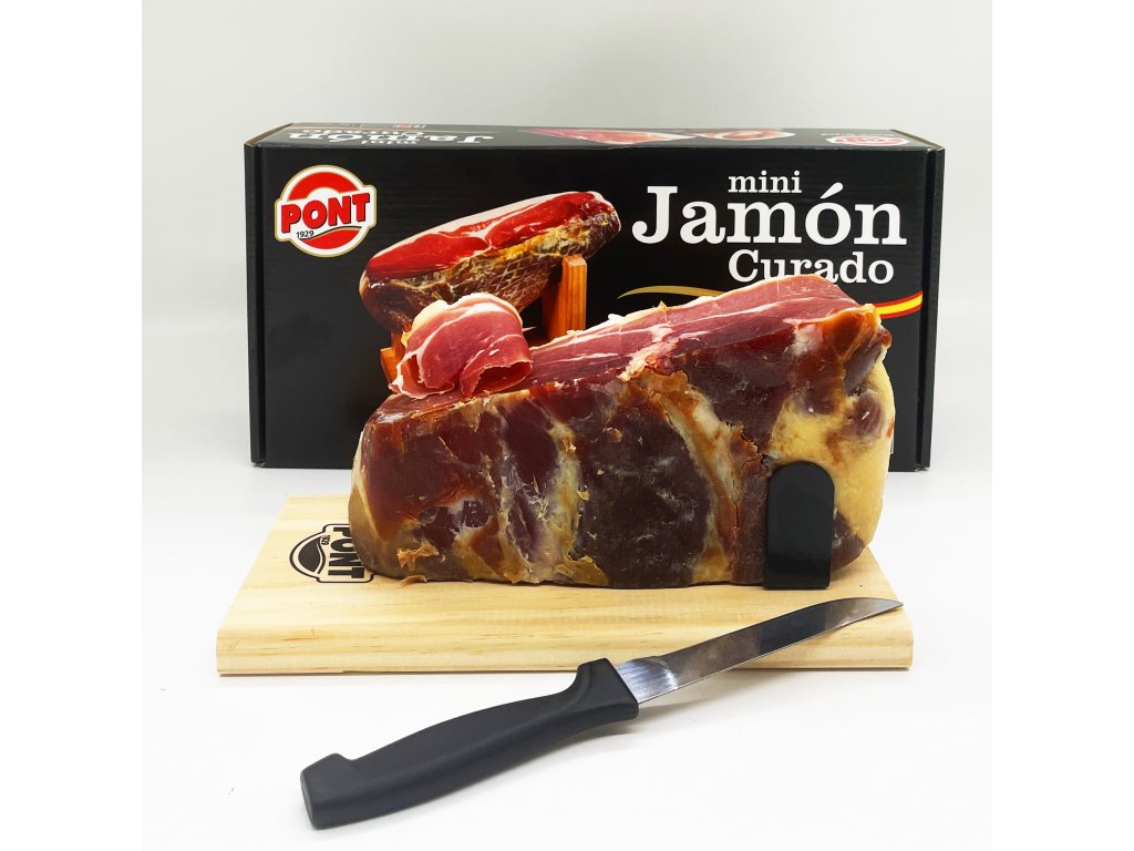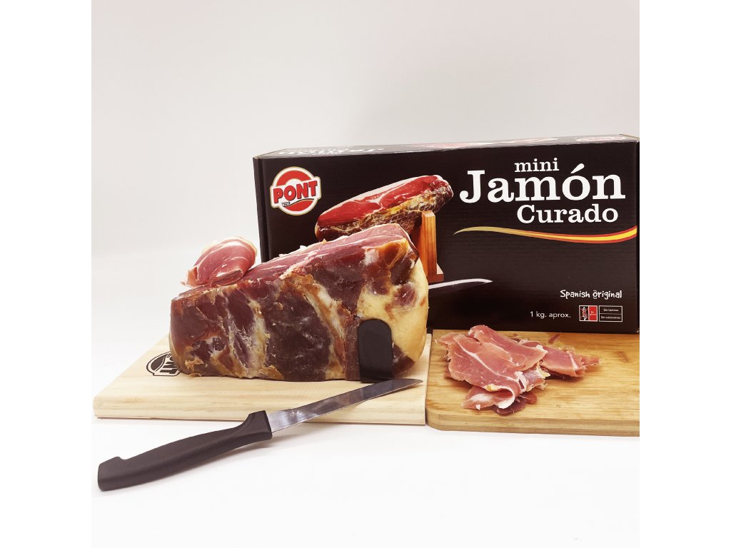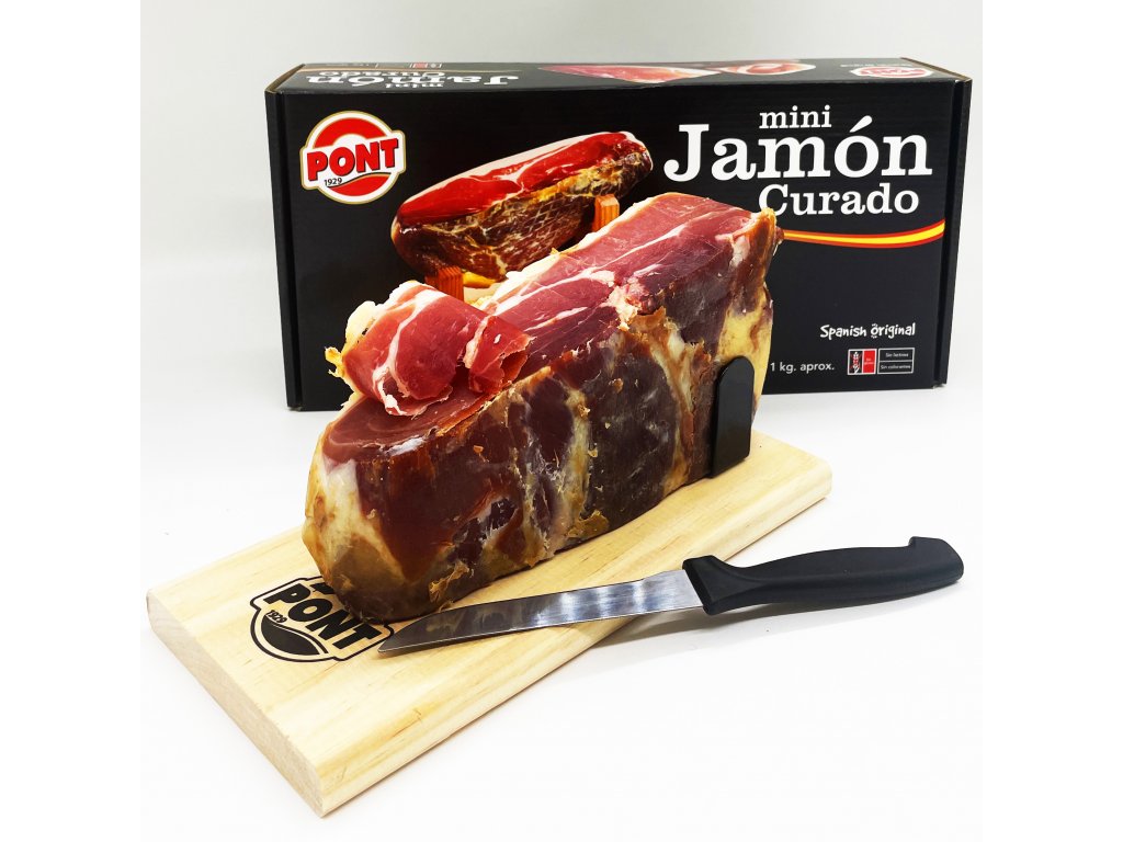 Dárková krabička s vyobrazeným Jamón ve stojánku a černým nožem