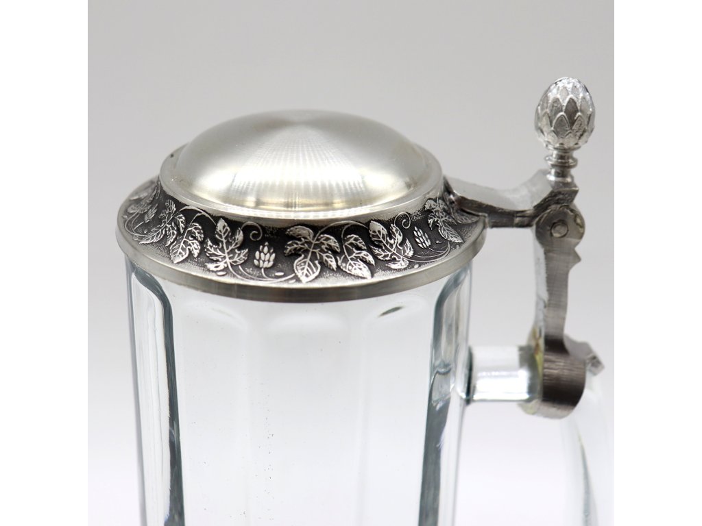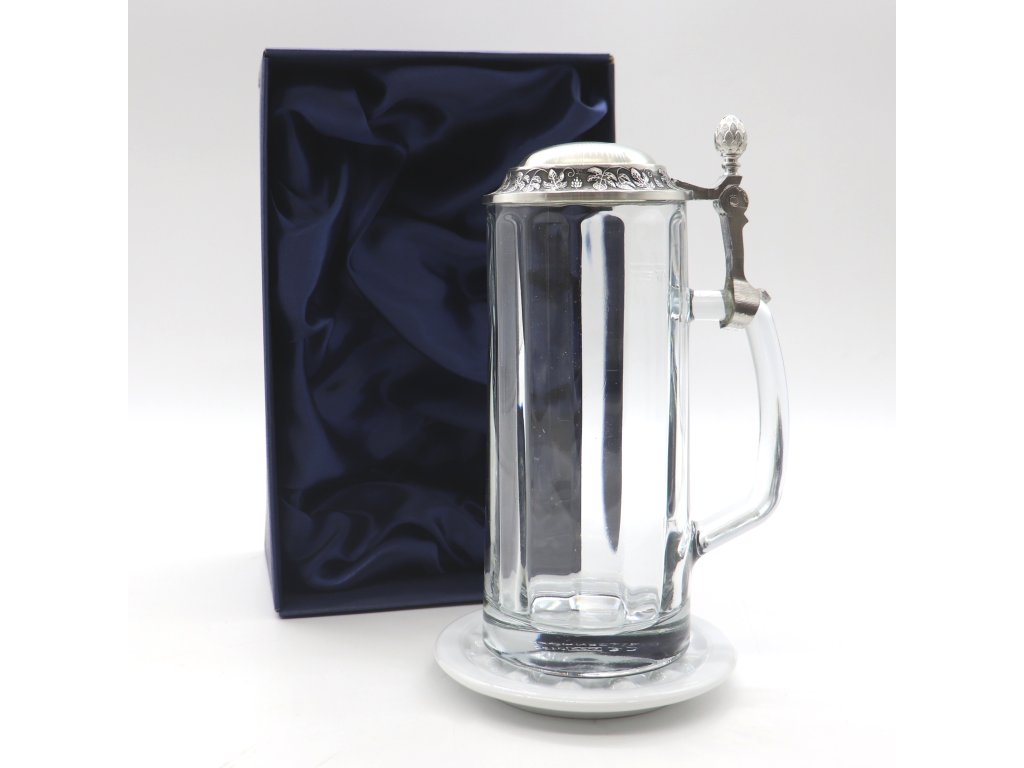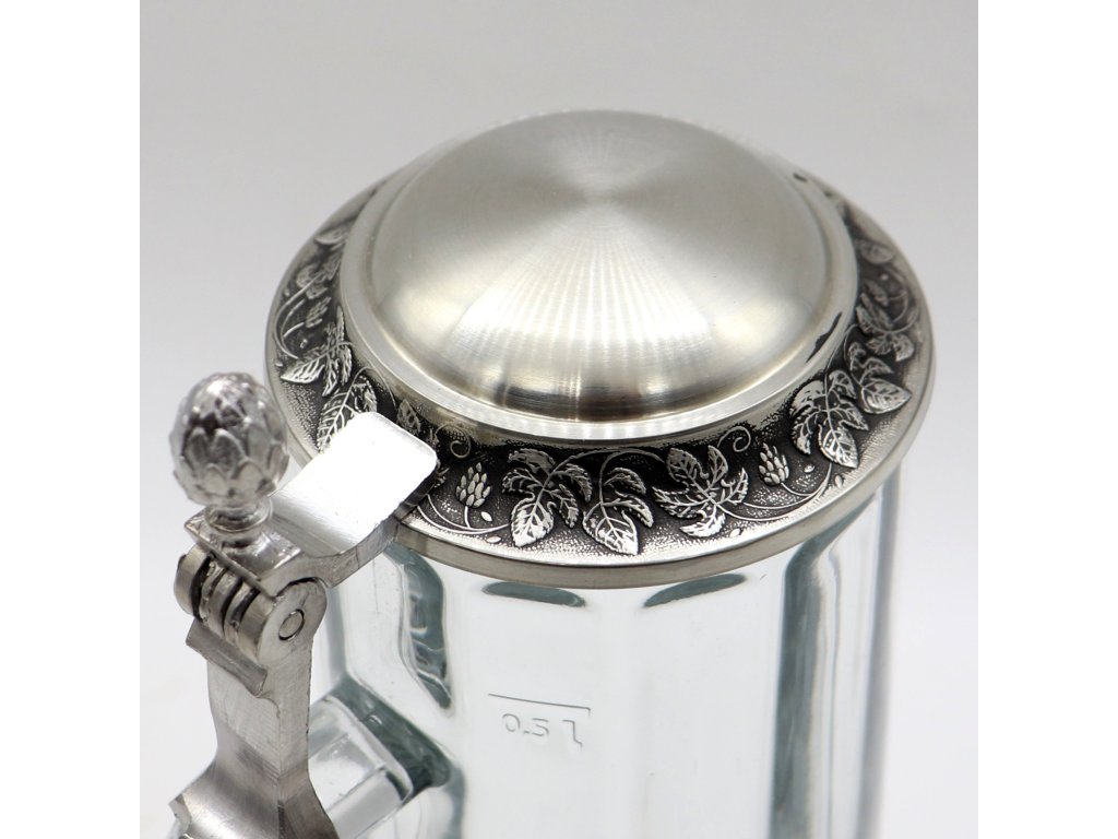 Materiál půllitru s víčkem: čiré sklo s cínovým víčkem