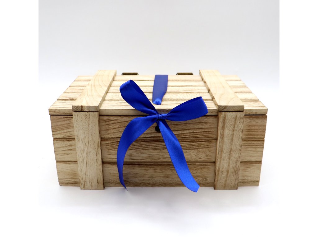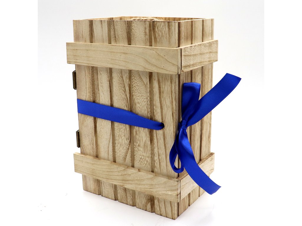 Dřevěný rozevírací box s úchytky na zavazování provazem či atlasovou stuhou.