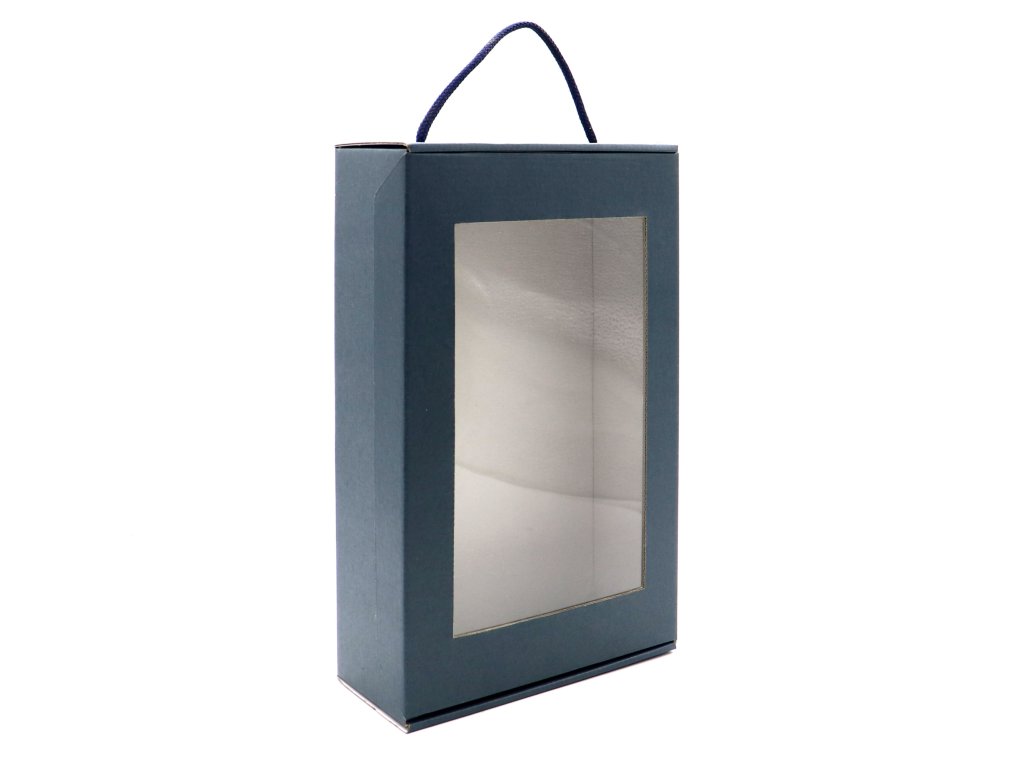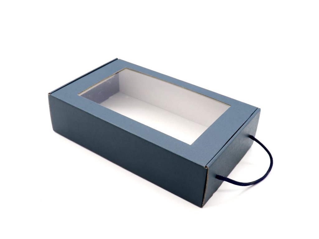 Kartonová dárková rozevírací krabice s odnosným uchem.