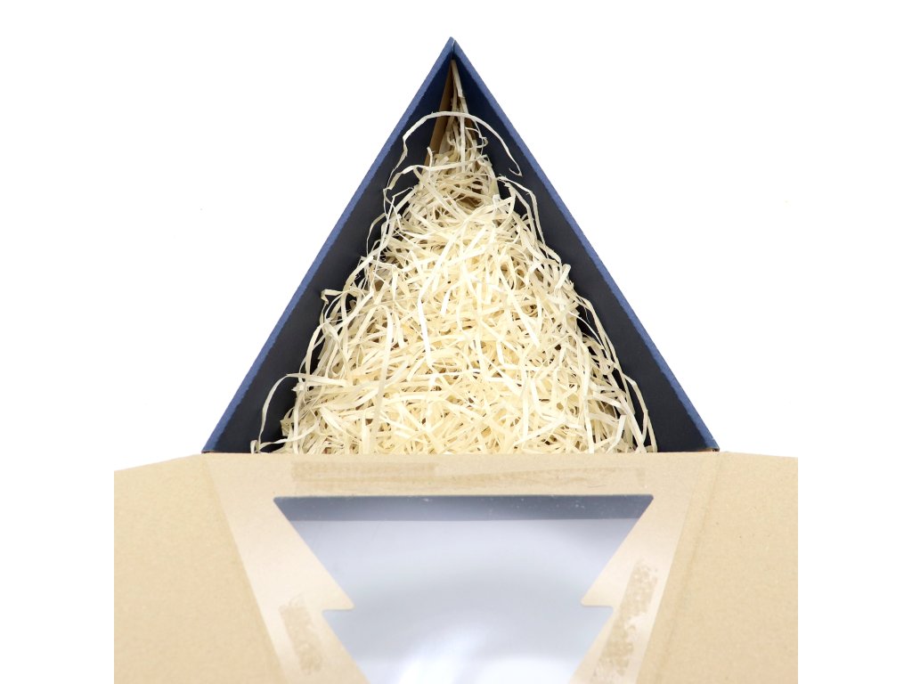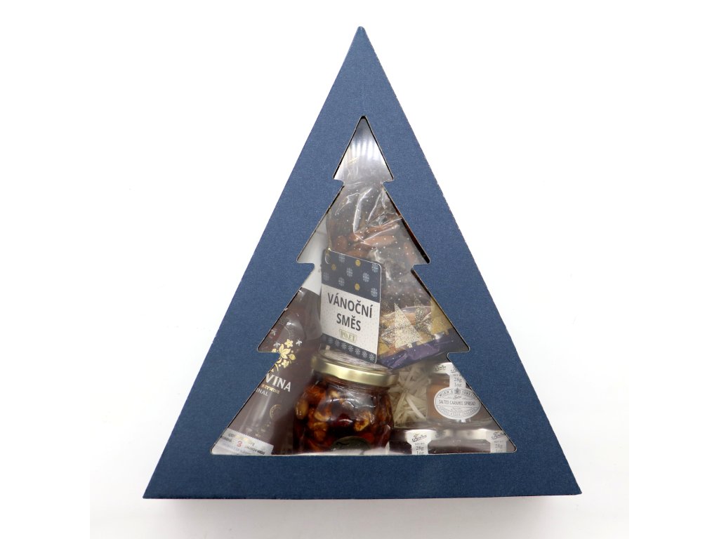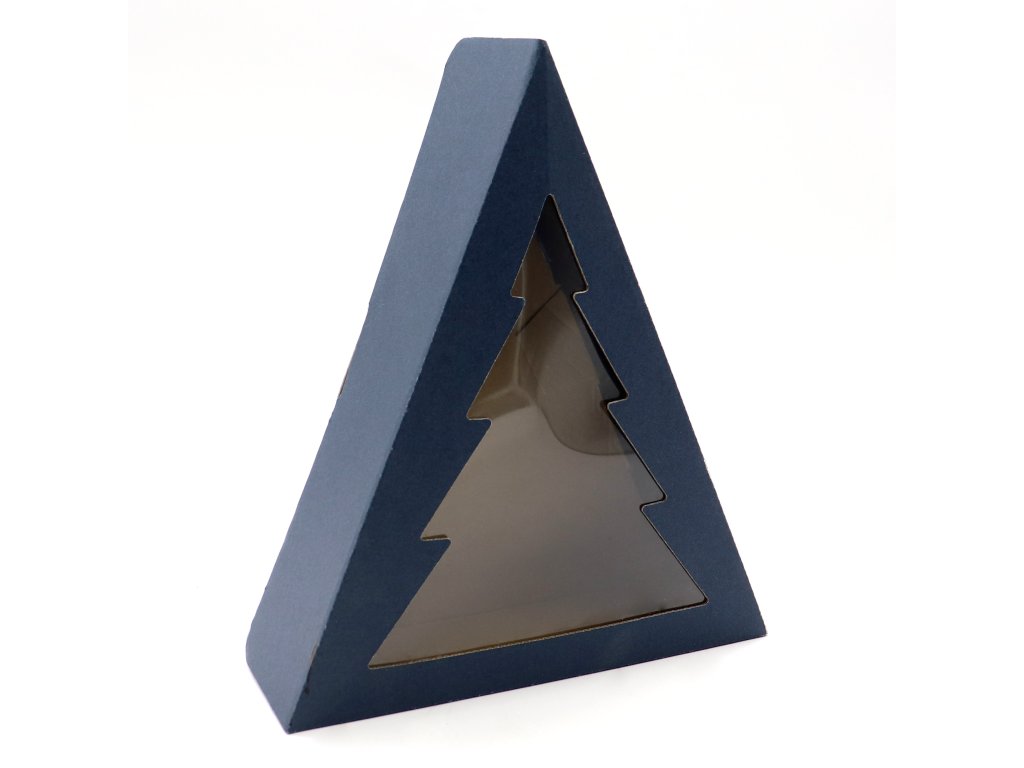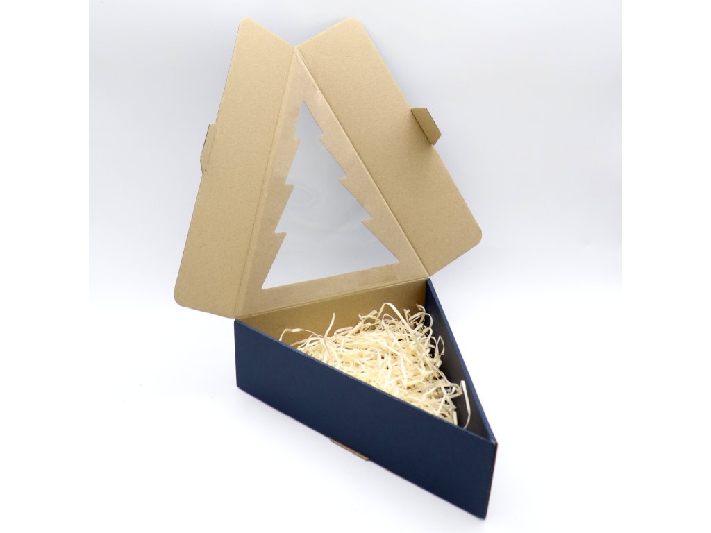 Kartonová dárková rozevírací krabice s výřezem ve tvaru stromu a slídou