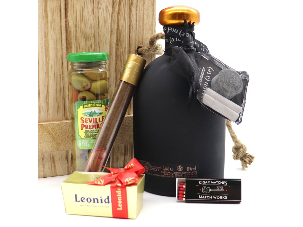 Dárkové balení Woodbox NEW . Lambrusco bílé na černém obsahuje