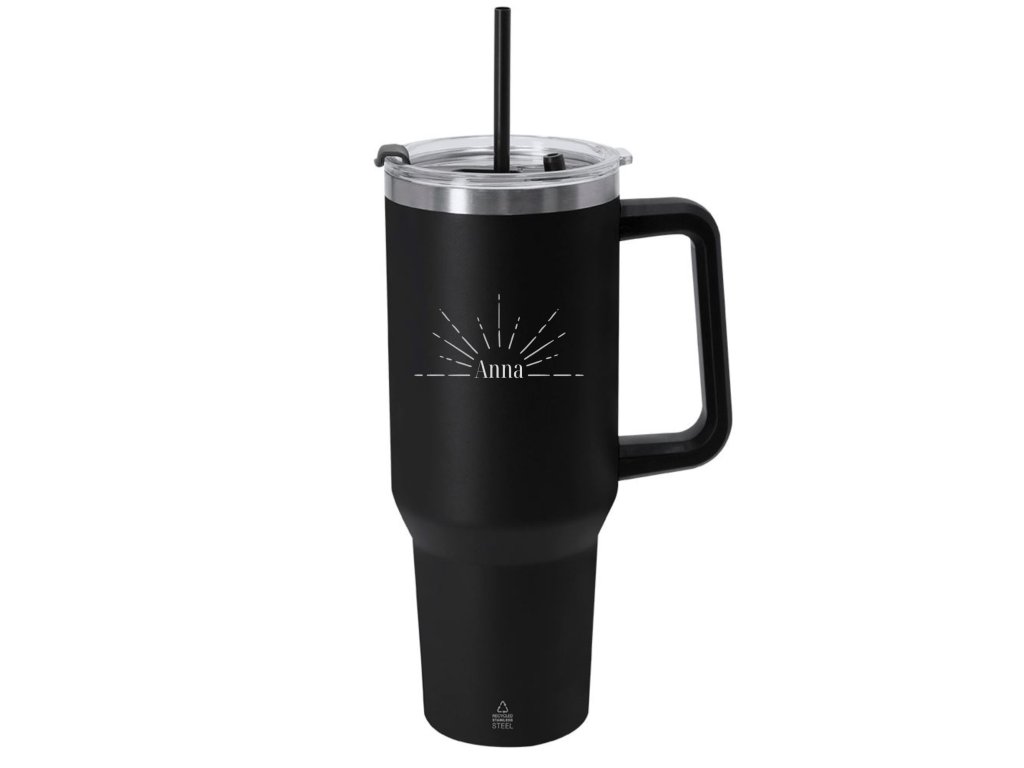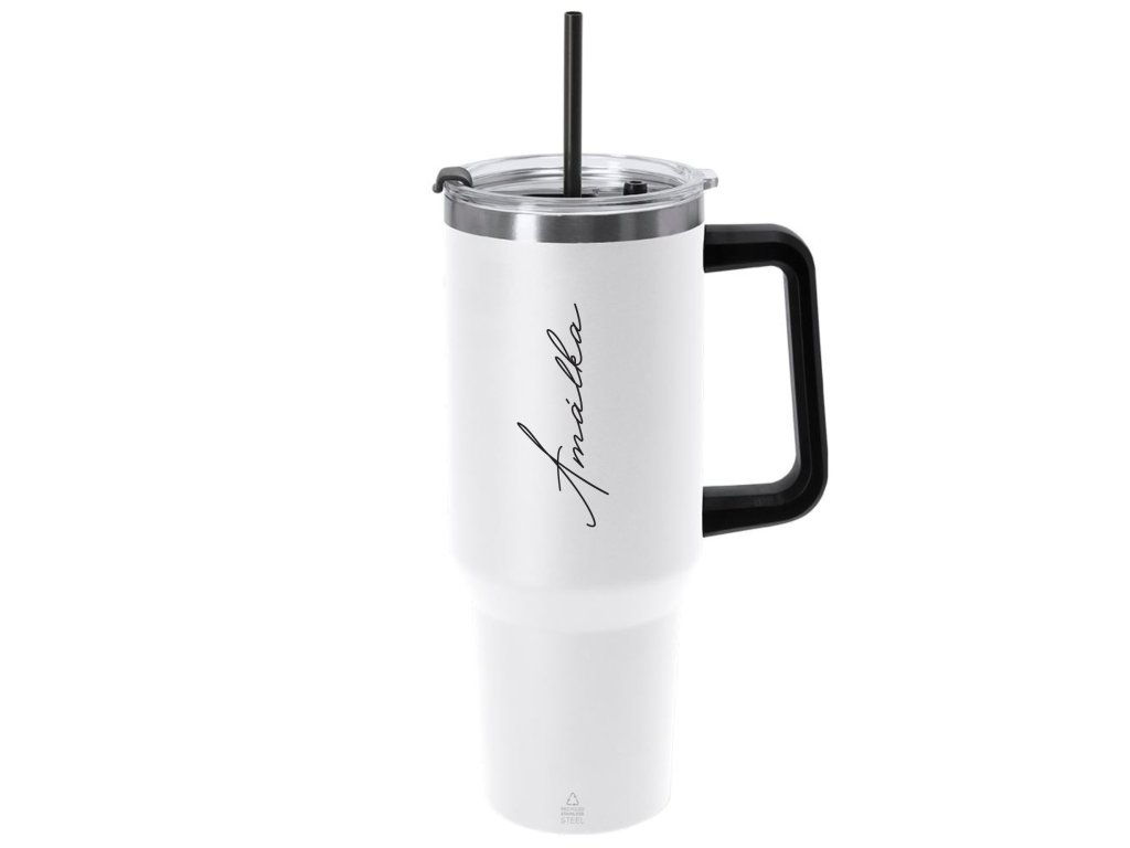 Vyrobena z recyklované nerezové oceli. Nabízí dvojitý systém pití – výlevku s hermetickým uzávěrem a integrované brčko, které se přizpůsobí preferencím uživatele. Součástí je ergonomické držadlo z polypropylenu (PP) pro pohodlné přenášení. Neobsahuje BPA. Termoska je ozdobena emblémem z recyklované nerezové oceli. Ideální volba pro udržitelnou hydrataci. Ať už pracujete, cvičíte nebo cestujete, tento hrnek je váš ideální společník.
