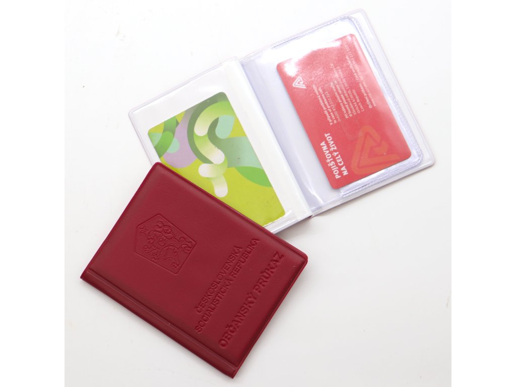 Legendární design socialistického občanského průkazu vyrobený z původní vínové koženky s termoražbou státního znaku a nápisu. Ideální velikost, která se vejde do každé zadní kapsy a i stranu 15 si můžete vytrhnout :)