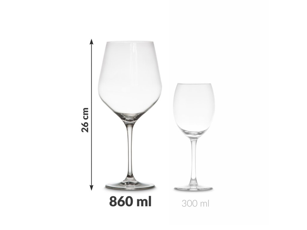 Materiál sklenic: čiré lesklé sklo, objem: 860 ml, výška 26 cm