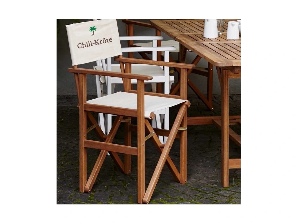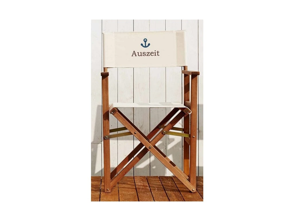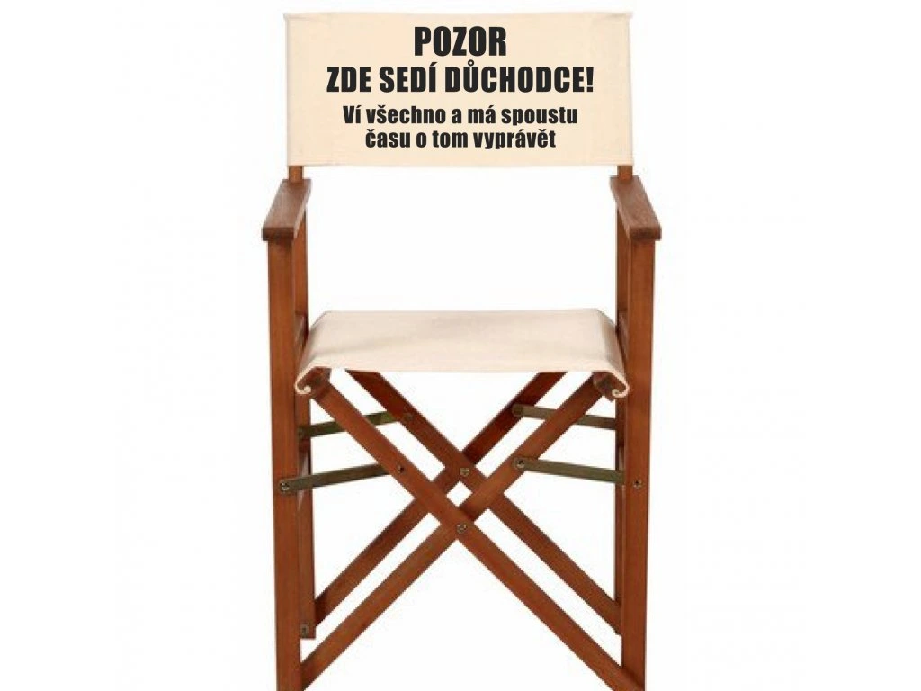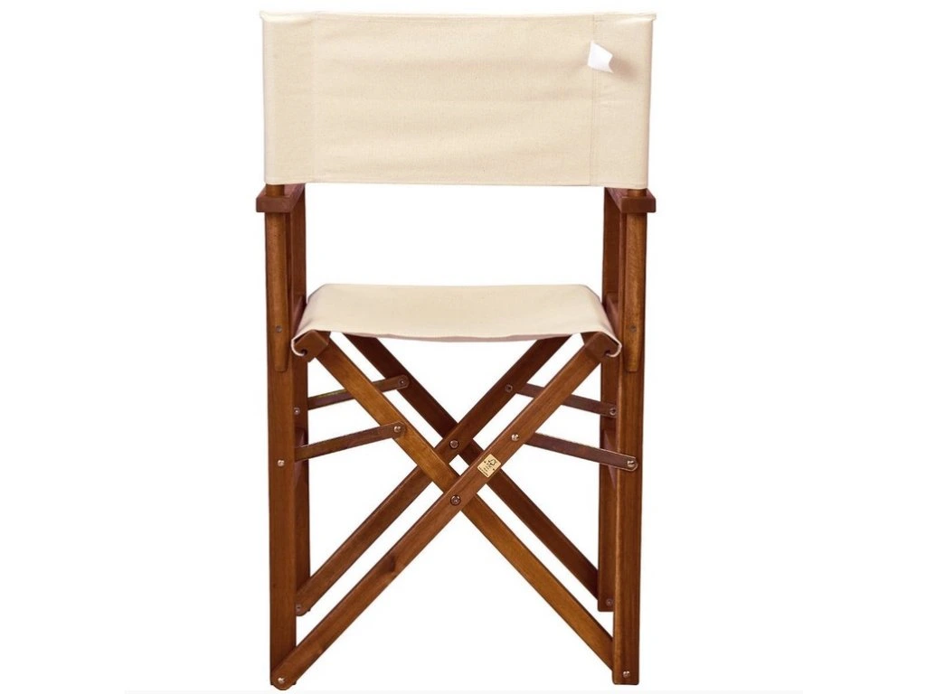 Režisérská židle v klasickém tvaru s dřevěnou konstrukcí. Opěradlo a sedadlo jsou z klasického přírodního materiálu - ze 100% bavlny.