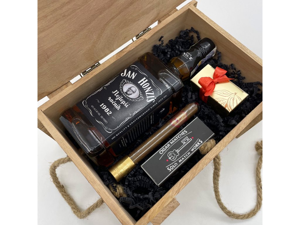- V sadě s doutníkem, doutníkovými zápalkami a pralinkami Leonidas