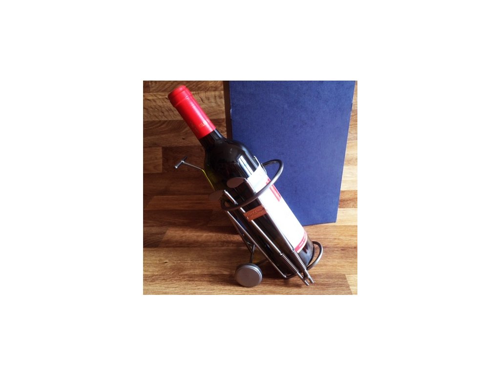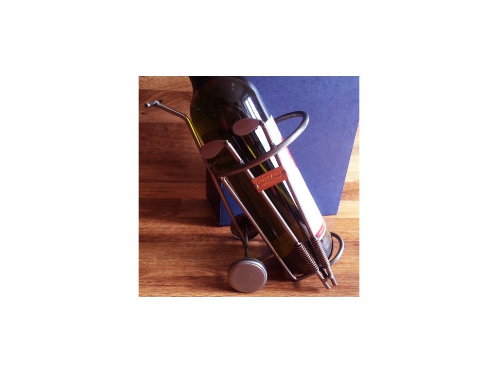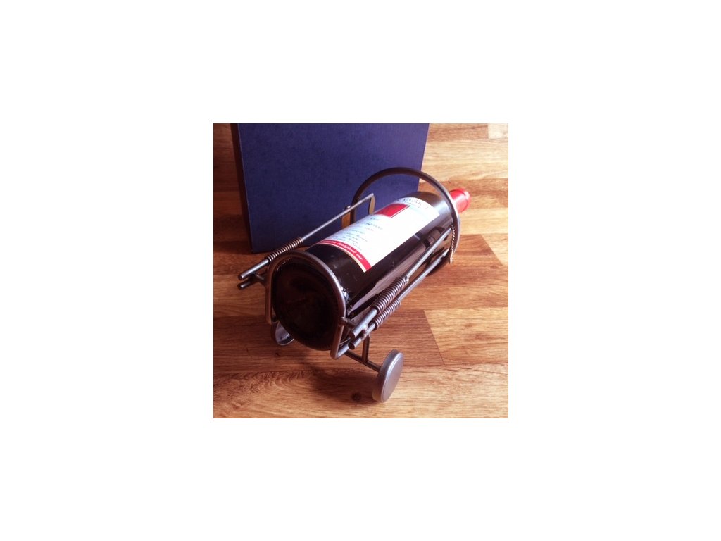 Každý kus je originál - ručně vyráběný originální kovový stojan na láhev ve tvaru golfového bagu.