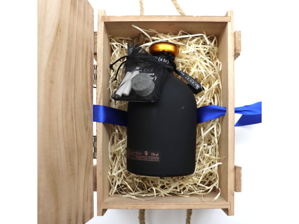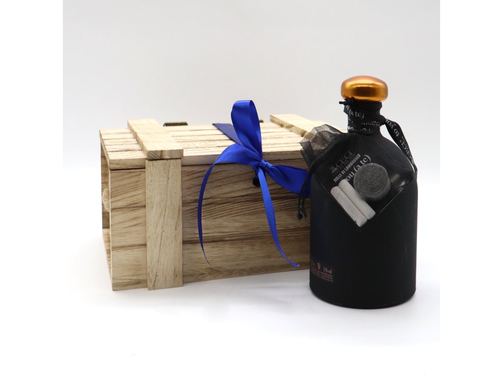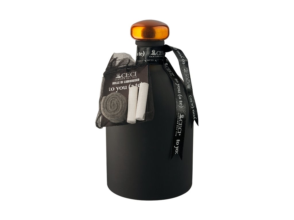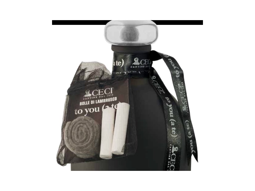 Designová karafa s pravým italským Lambruscem vám v tom pomůže. Napište křídou originální osobní vzkaz na tabulový povrch lahve bílou křídou, která je součástí setu (zavěšena v šifonovém sáčku). Vzkaz je možné mazat pomocí savé textilie.